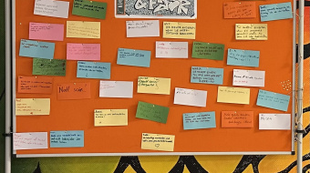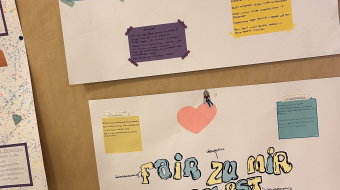 Die Ergebnisse sind unter anderem in Raum 410 und auf der 4. Etage zu sehen. Die Ergebnisse des KI-Workshops werden noch angebracht.