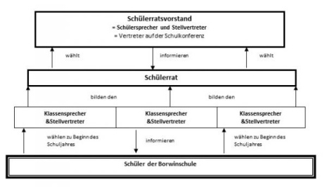 Um eine kommunikative und interaktive Verbindung zwischen den Schüler:innen und der Schulleitung sowie dem Elternrat herzustellen, gibt es an unserer Schule den Schüler:innenratsvorstand. Dieser besteht aus 5 Schüler:innen und einer Person in der Sprecher:innenfunktion aus den Klassenstufen 7 bis 12, die von den Klassensprecher:innen aller Klassen gewählt werden. Der Schüler:innenratsvorstand hat die Aufgabe, als Ansprechpartner:in der Schüler:innen und als Schnittstelle für die Schulleitung zu fungieren, sodass Projekte, Ideen und Probleme gezielt von Schüler:innen eigenständig bearbeitet werden können. Denn nur die Schüler:innen selbst können die Praxis von Unterricht und Schule in die Beratung von neuen Veränderungen einfließen lassen.